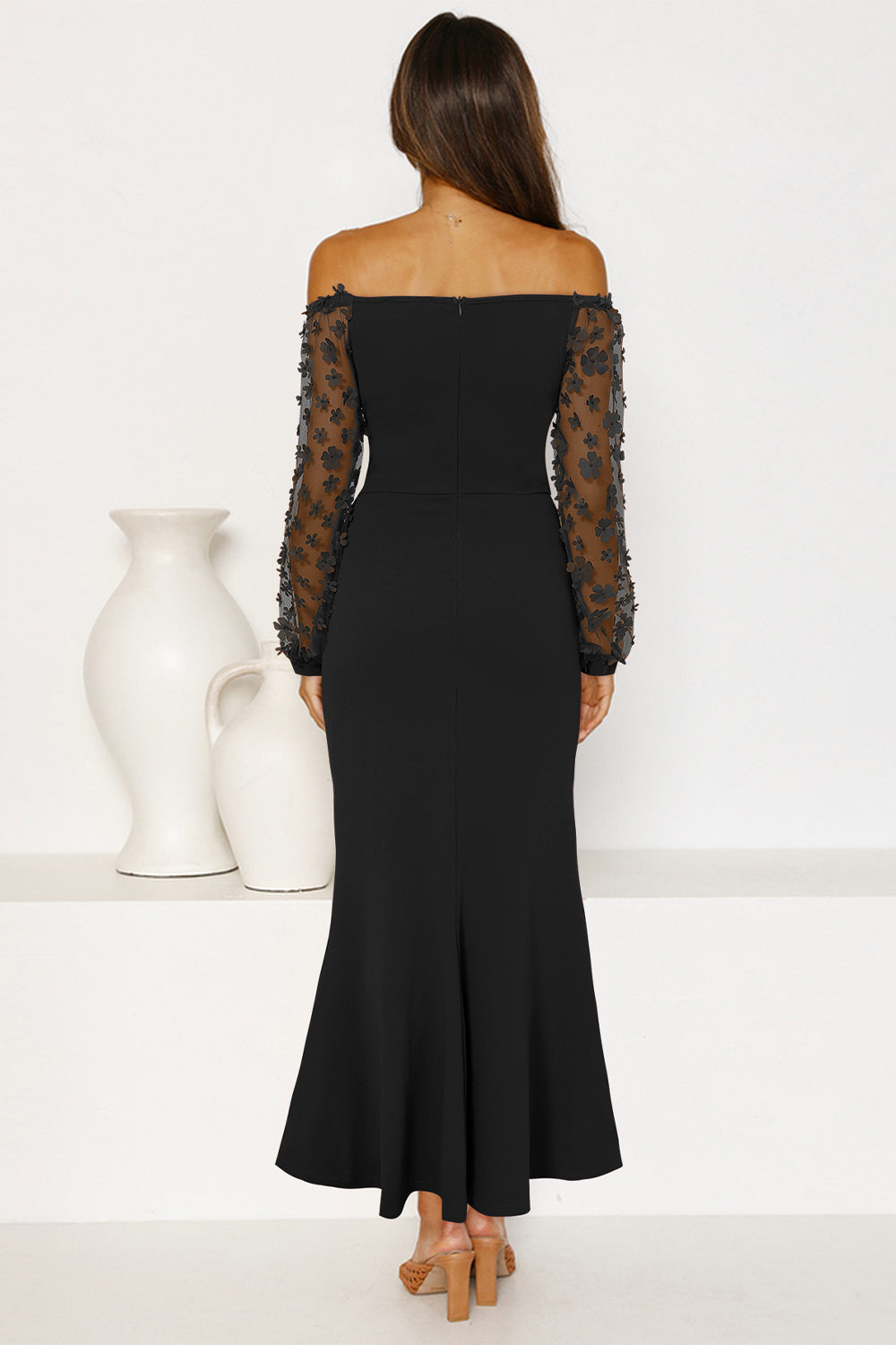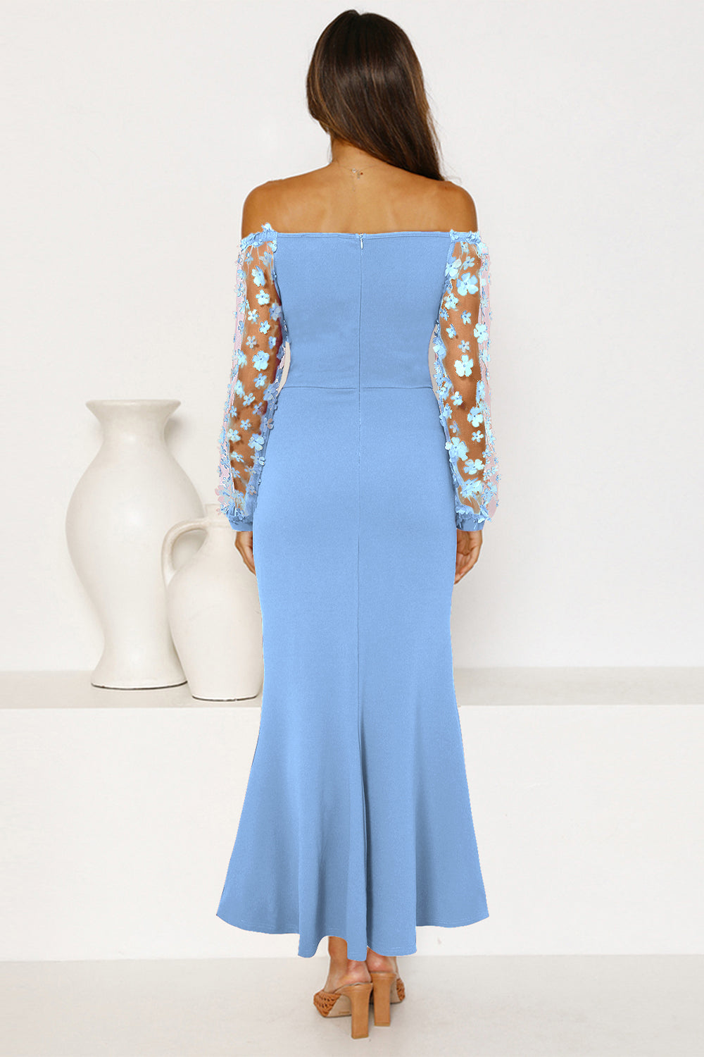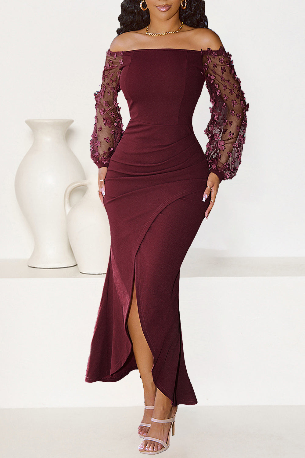 / Sheer Mesh Bishop Cocktail Party Dress